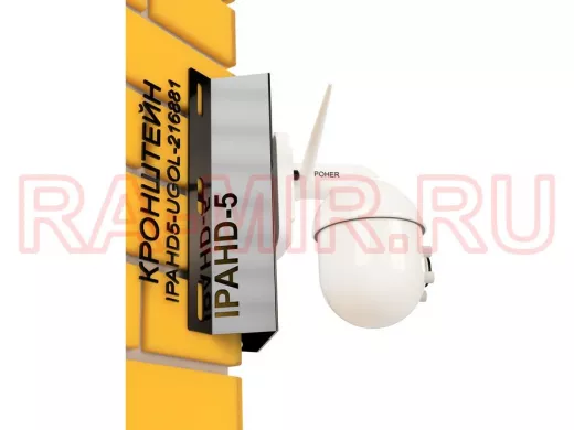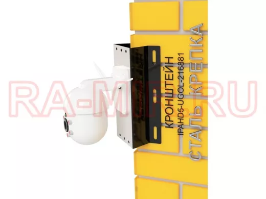 Кронштейн угловой металлический для камеры видеонаблюдения "IPAHD5-UGOL-216880". Подходит для большинства типов видеокамер: цилиндрических, купольных или поворотных