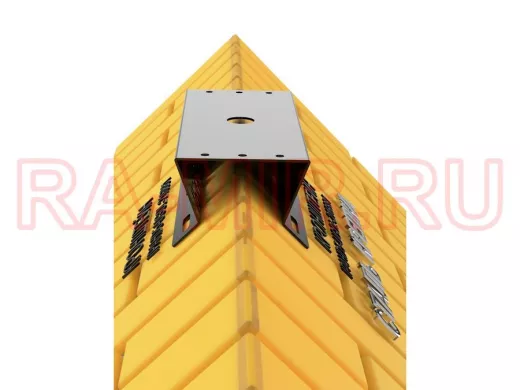- Кронштейн надежно крепится при помощи четырех шурупов-глухарей и дюбелей (входит в комплект) на угол дома.