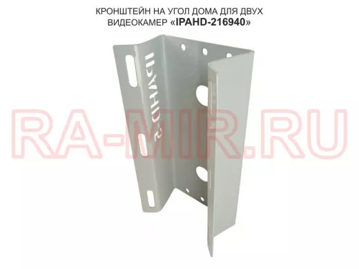 Заказать звонокКронштейн на угол дома для двух видеокамер, увеличенный, 2 отверстия "IPAHD5-216940" серый, 24х12см