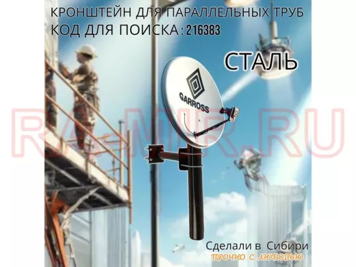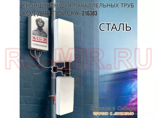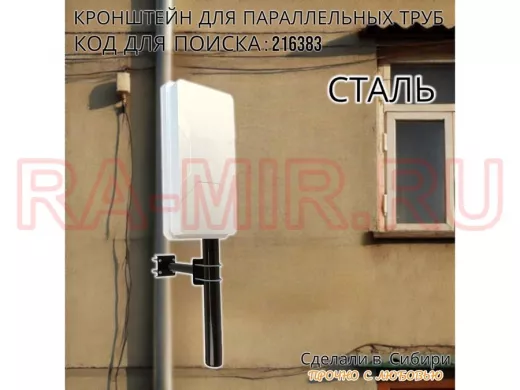 - Универсальный усиленный кронштейн для параллельных труб предназначен для крепления прожектора,антенн,видеокамер на трубе диаметром от 15 до 51мм.