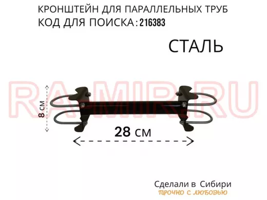 Заказать звонокКронштейн для параллельных труб диаметром от 15 до 51мм длина 25см "HIWOLL-216383" стальной, чёрный