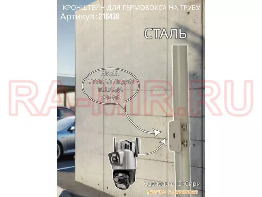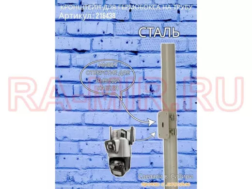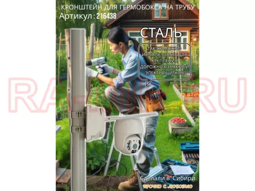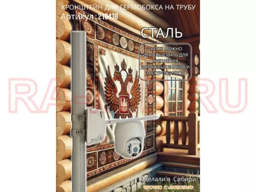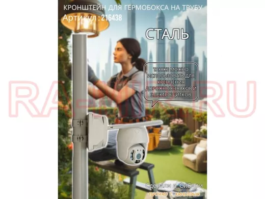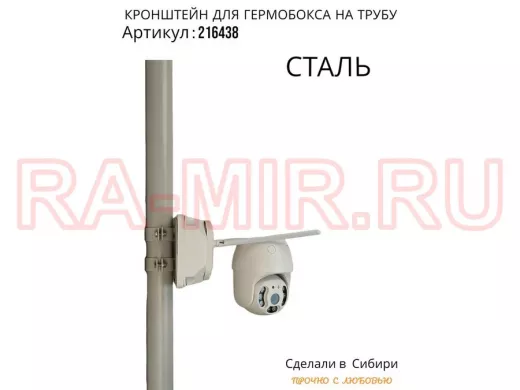 - Кронштейн позволяет быстро зафиксировать гермобокс с видеокамерой на трубу.