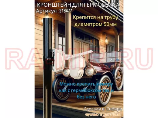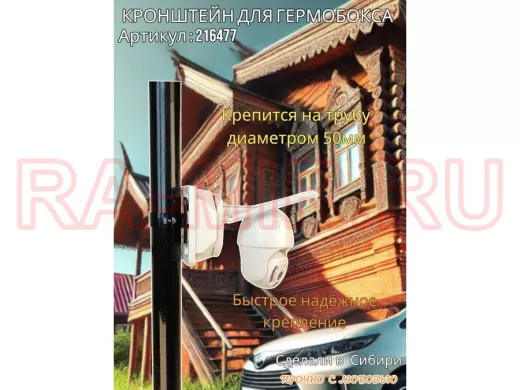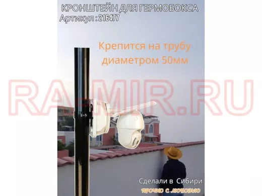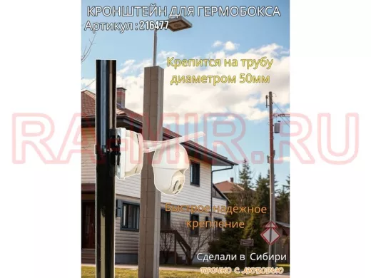 Кронштейн позволяет быстро зафиксировать гермобокс с видеокамерой на трубу.