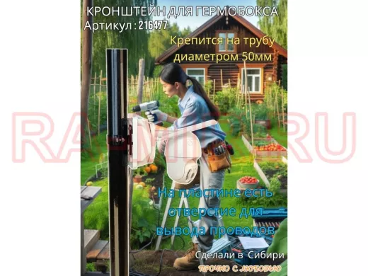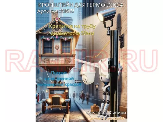 Универсальный усиленный кронштейн предназначен для крепления гермобоксов,коробок с видеокамерой, дорожных знаков , электрических щитков на трубе диаметром 50мм.