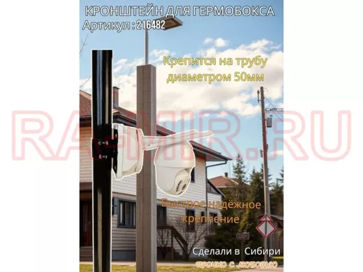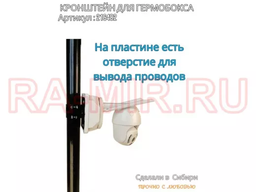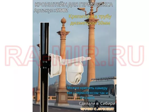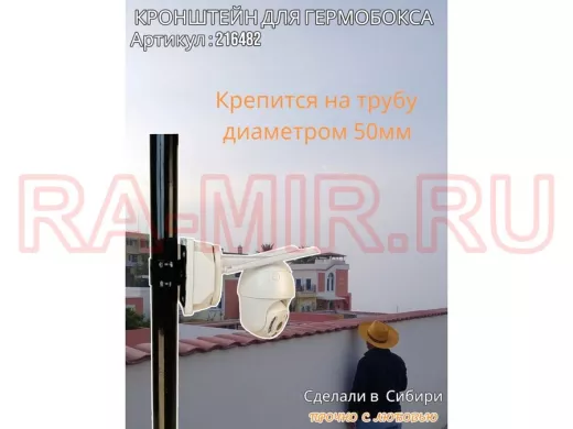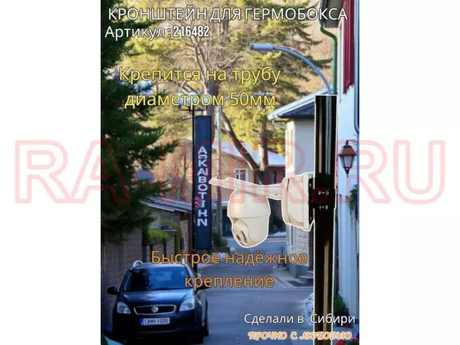 - Кронштейн позволяет быстро зафиксировать гермобокс с видеокамерой на трубу.