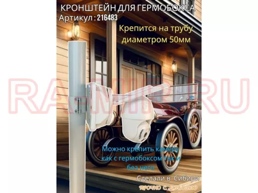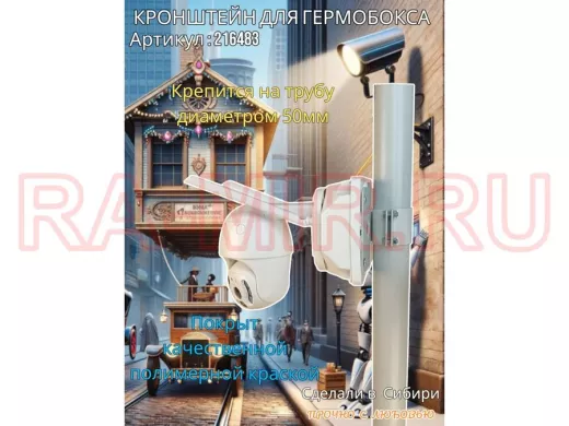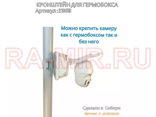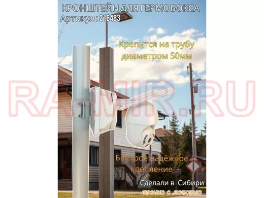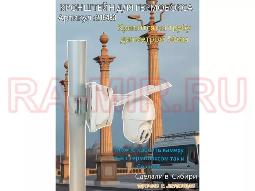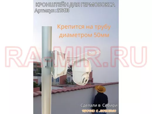 - Кронштейн позволяет быстро зафиксировать гермобокс с видеокамерой на трубу.