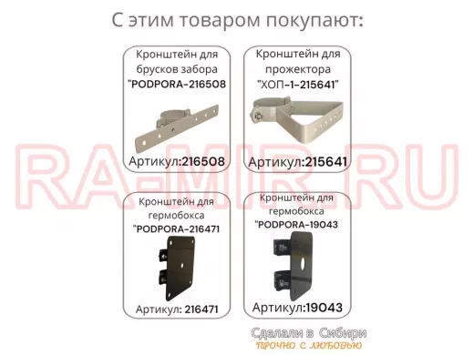 - Универсальный усиленный кронштейн предназначен для крепления направляющих забора, светодиодных прожекторов, светильников, видеокамер, усилителей, указателей, почтовых ящиков, скворечников, табличек, дорожных знаков, электрощита.