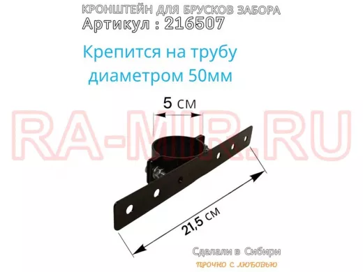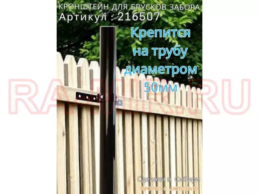 Кронштейн для крепления брусков забора на трубу диаметром 50мм "PODPORA-216507" сталь, цвет черный