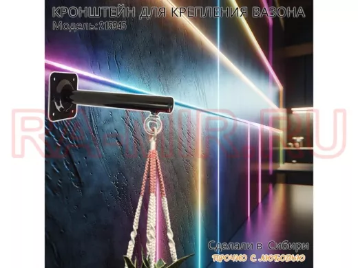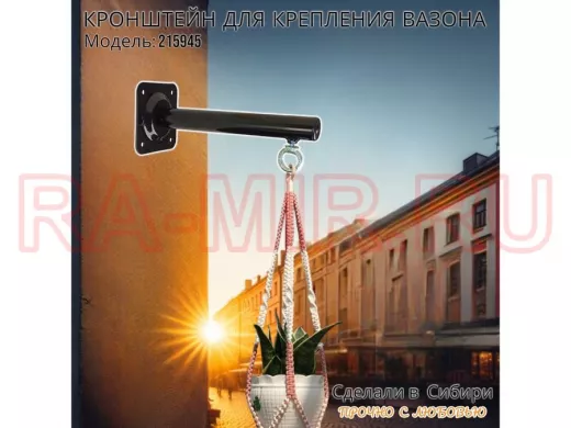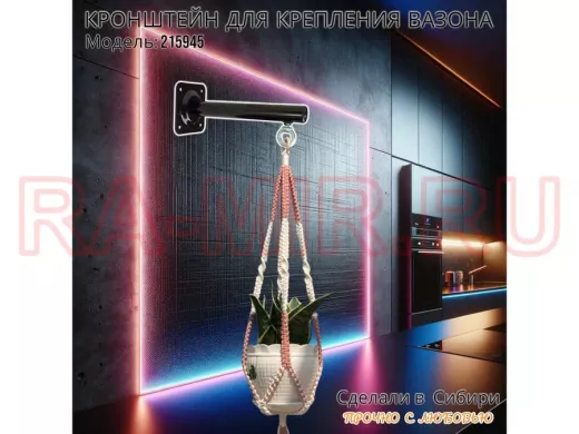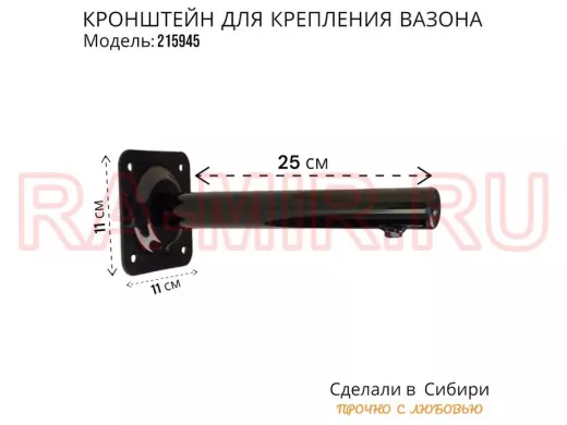 Заказать звонокКронштейн для крепления кашпо, вазона на стене угол 90гр вылет 25см "ПРОСЕКИНО-215945" сталь, черный