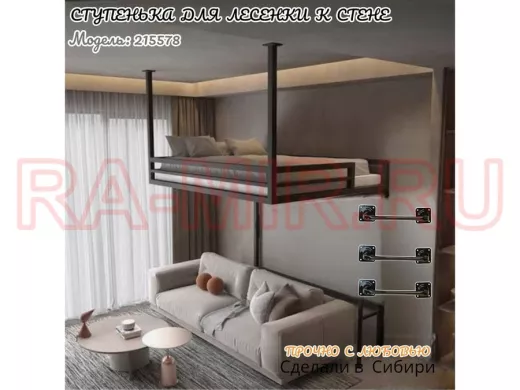 - Ступенька для лесенки имеет лаконичный и стильный дизайн, для крепления к стене