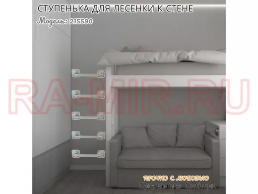 - Ступенька для лесенки имеет лаконичный и стильный дизайн, для крепления к стене