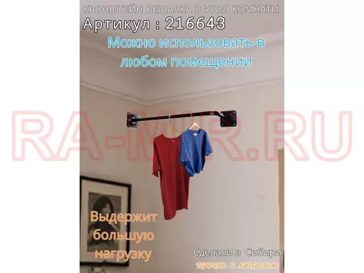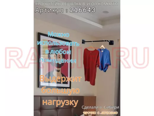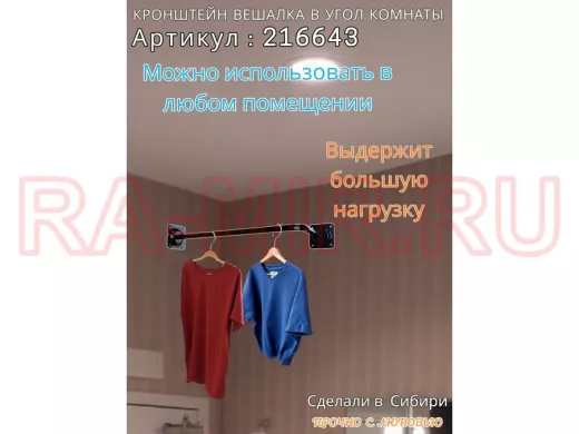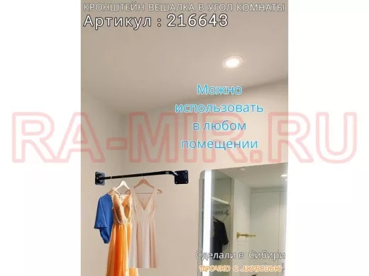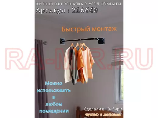 - Кронштейн для плечиков с одеждой, используется для установки в угол комнаты или к потолку.