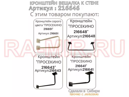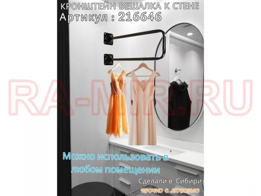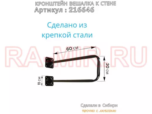 Заказать звонокКронштейн для плечиков с одеждой, вешалка к стене 60 х 20 см "ПРОСЕКИНО 216646" чёрный, 22мм