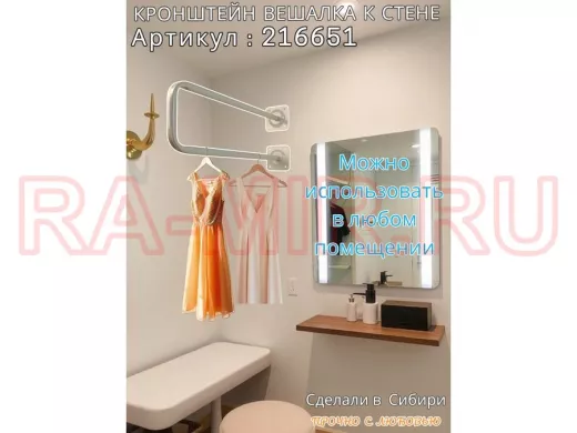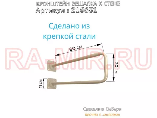 Заказать звонокКронштейн для плечиков с одеждой, вешалка к стене 60 х 20 см "ПРОСЕКИНО 216651" серый, 22мм
