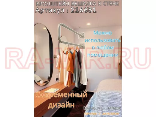 Кронштейн для плечиков с одеждой крепится в углу гардеробной или комнаты, также может крепиться к потолку и стене.