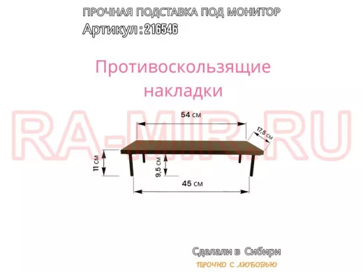 Заказать звонокПодставка под монитор на стол 54х17,5см высота 11см, венге "ABBIKUS-216546" черные ножки