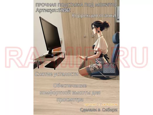 - Универсальная подставка для монитора имеет лаконичный и стильный дизайн, идеально подойдет для любого интерьера.
