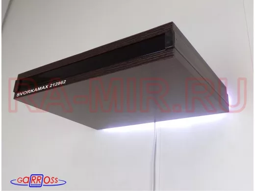 - Полка скрытого крепления укомплектована светодиодной подсветкой с выключателем на шнуре и блоком питания