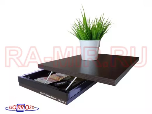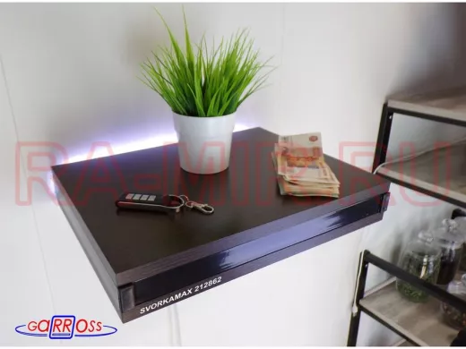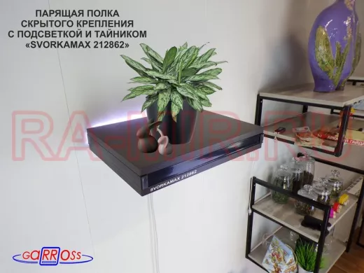 Заказать звонокПарящая полка скрытого крепления с подсветкой и тайником, черный "SVORKAMAX 212862" 30х40 см, венге
