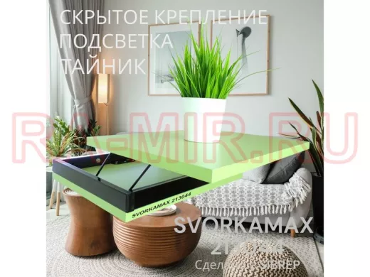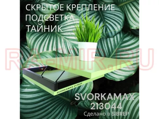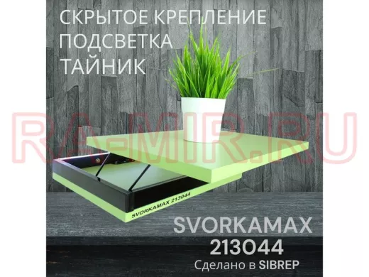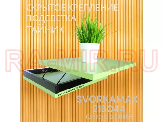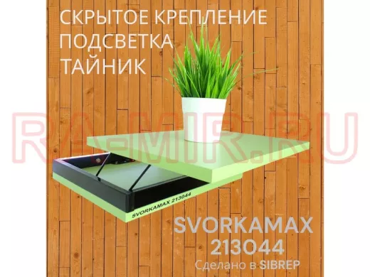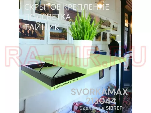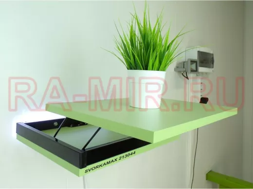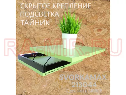 Заказать звонокПарящая полка скрытого крепления с подсветкой и тайником, черный "SVORKAMAX 213044" 30х40, салатовый
