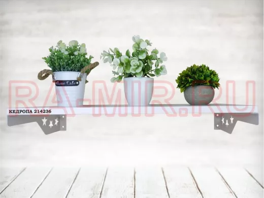 Полка предназначена для гостинной (можно разместить цветы, сувениры, фотографии), для коридора (под ключи, шапки, шарфы и перчатки), для детской (под рисунки, поделки, книги), для кухни (под микроволновку, чайник, посуду) и др.