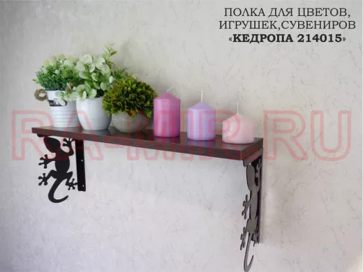 Заказать звонокПолка для цветов, игрушек,сувениров "КЕДРОПА-214015 гекон" размер 15х60х24 см, венге
