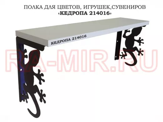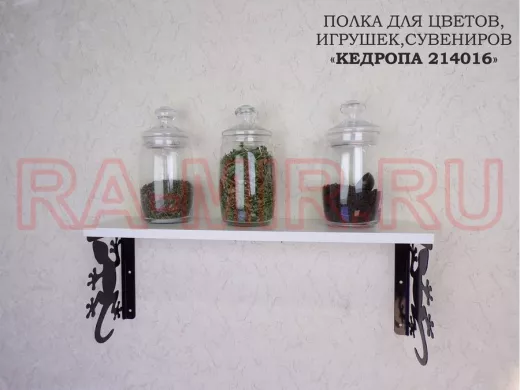 Заказать звонокПолка для цветов, игрушек,сувениров "КЕДРОПА-214016 гекон" размер 15х60х24 см, белый шагрень