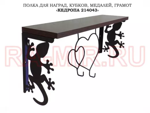 Заказать звонокПолка для наград, кубков, медалей, грамот "КЕДРОПА-214043 гекон" размер 15х60х24 см, венге с сердцем