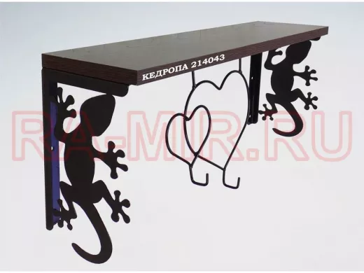 Интересная полка с профилем гекона и двумя крючками, позволит разнообразить интерьер, сделать его непохожим, уникальным, запоминающимся.