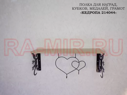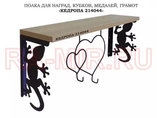 Заказать звонокПолка для наград, кубков, медалей, грамот "КЕДРОПА-214044 гекон" размер 15х60х24 см, дуб с сердцем