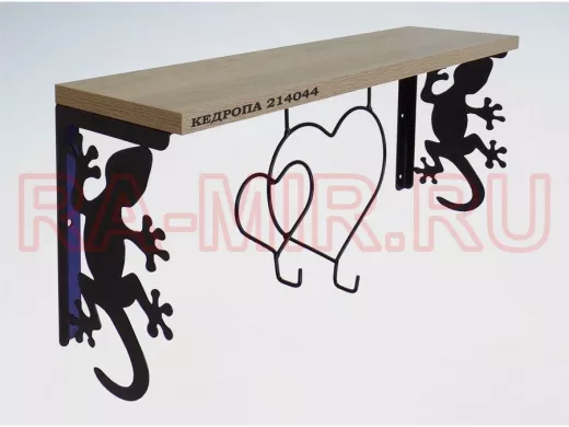 Интересная полка с профилем гекона и двумя крючками, позволит разнообразить интерьер, сделать его непохожим, уникальным, запоминающимся.