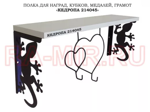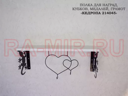 Заказать звонокПолка для наград, кубков, медалей, грамот "КЕДРОПА-214045 гекон" размер 15х60х24 см, сосна с сердцем