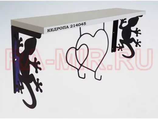 Интересная полка с профилем гекона и двумя крючками, позволит разнообразить интерьер, сделать его непохожим, уникальным, запоминающимся.