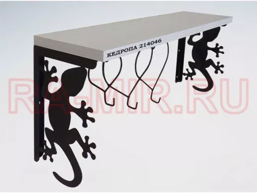 Интересная полка с профилем гекона и тремя крючками, позволит разнообразить интерьер, сделать его непохожим, уникальным, запоминающимся.
