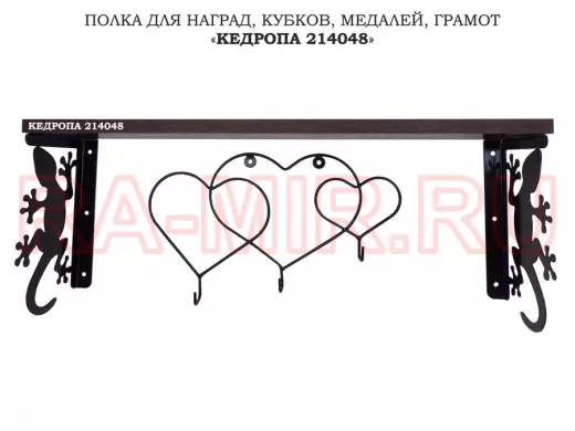 Заказать звонокПолка для наград, кубков, медалей, грамот "КЕДРОПА-214048 гекон"размер 15х60х24 см, венге с сердцами