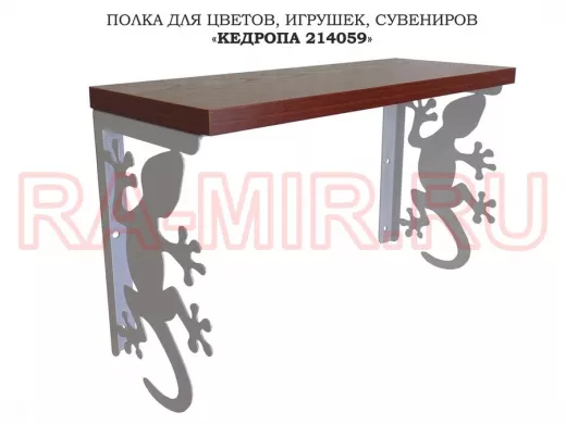 Заказать звонокПолка для цветов, игрушек,сувениров "КЕДРОПА-214059 гекон" размер 15х40х24 см, серый, орех итал