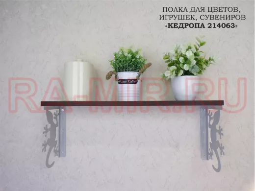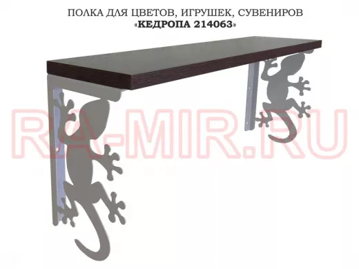 Заказать звонокПолка для цветов, игрушек,сувениров "КЕДРОПА-214063 гекон" размер 15х60х24 см, серый, венге