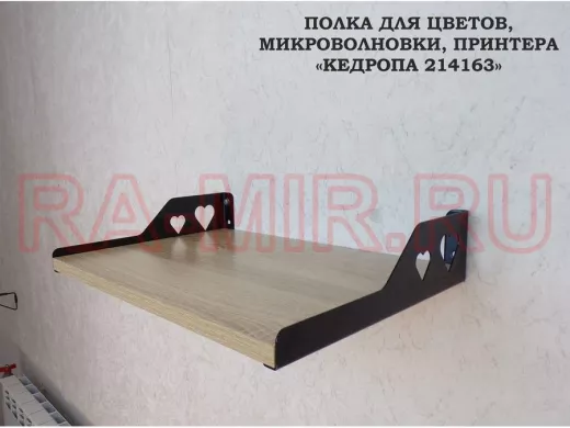 Заказать звонокПолка для цветов, микроволновки, принтера "КЕДРОПА-214163" размер 40х30х10 см, дуб сонома, сердце