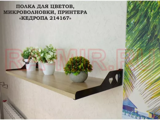 Заказать звонокПолка для цветов, микроволновки, принтера "КЕДРОПА-214167" размер 90х30х10 см, дуб сонома, сердце