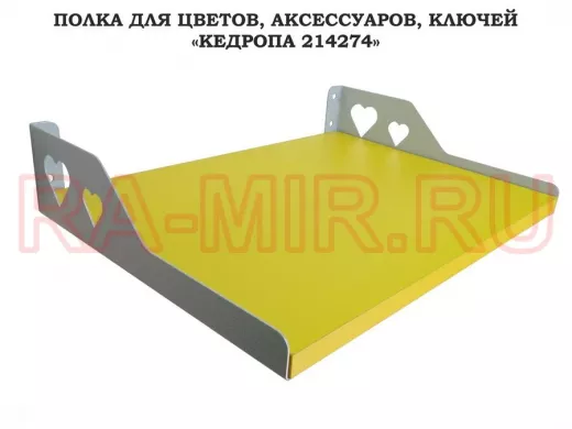Заказать звонокПолка для цветов, аксессуаров, ключей "КЕДРОПА-214274" размер 40х30 см, желтый, сердце