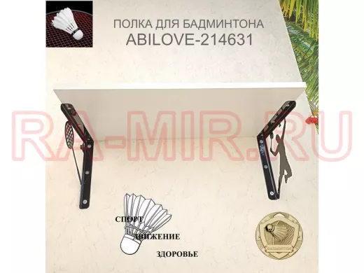 Заказать звонокПолка спортивная "БАДМИНТОН ABILOVE-214631" для кубков, медальница, сосна выбеленная, размер 30х60см