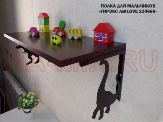 Заказать звонокПолка с динозаврами "ТИРЭКС ABILOVE-214686" для конструкторов, машинок, венге, 30х60см