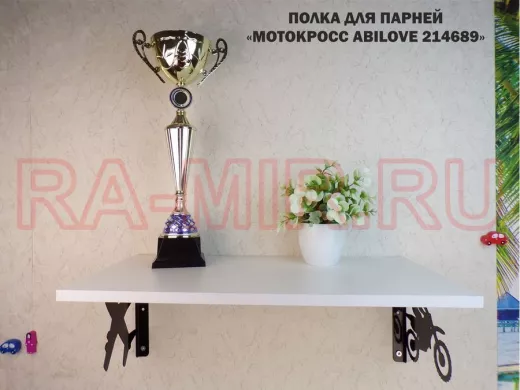 Заказать звонокПолка для парней "МОТОКРОСС ABILOVE-214689" для кубков и аксессуаров, белая, 30х60см