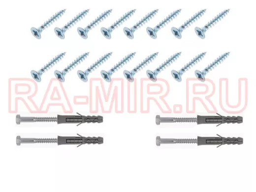 - Полка надежно крепится к стене при помощи шурупов с дюбелями, идущих в комплекте