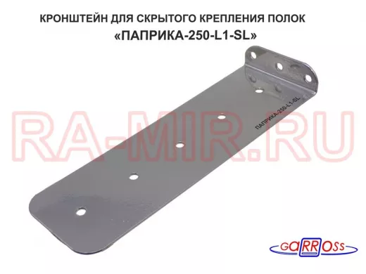 "ПАПРИКА-250-L1-SL" кронштейн под хром для скрытого крепления полок,80х250х2мм, 9отв.6,5мм,без полки