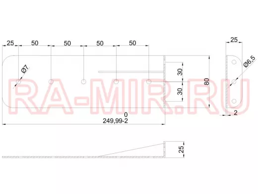 Заказать звонок"ПАПРИКА-250-L2-GR" кронштейн УСИЛЕННЫЙ серый для скрытого крепления полок, 80х250х2мм, 9отв. 6,5мм