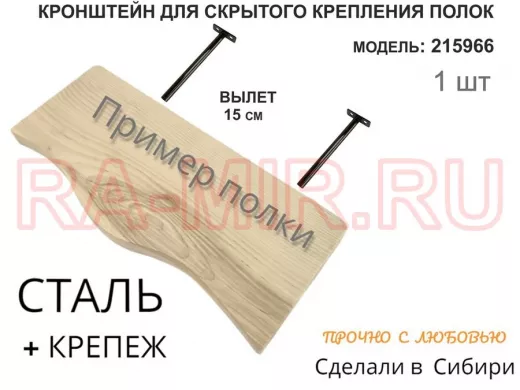 Заказать звонокКронштейн для скрытого крепления полок,12х150мм, черный, в наборе 1шт "SVORKAMAX-215966" без полки