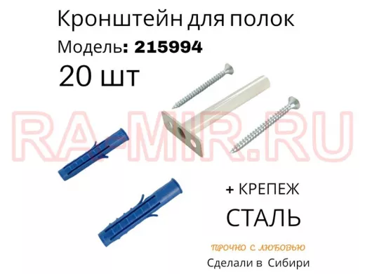 Заказать звонокКронштейн для скрытого крепления полок, 12х90мм, серый, в наборе 20шт "SVORKAMAX-215994" без полки