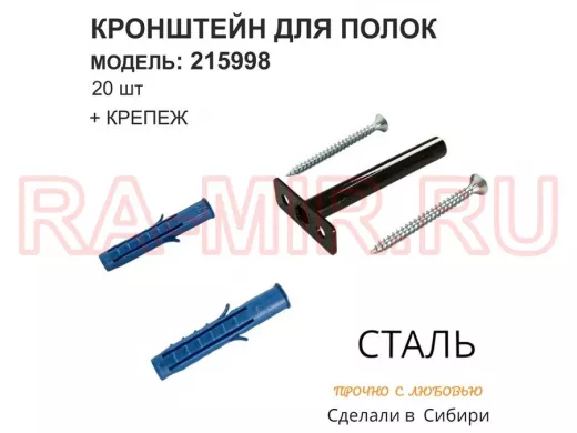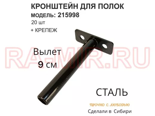 Заказать звонокКронштейн для скрытого крепления полок, 12х90мм, черный, в наборе 20шт "SVORKAMAX-215998" без полки