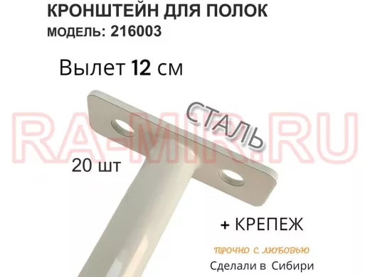 Кронштейн для скрытого крепления полок,12х120мм, серый, в наборе 20шт "SVORKAMAX-216003" без полки